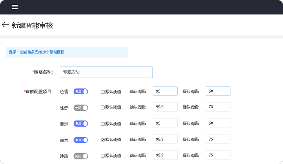 結(jié)合智能AI大腦,靈活進審流程設(shè)置,極大提升審核效率,滿足不同場景審核需求
